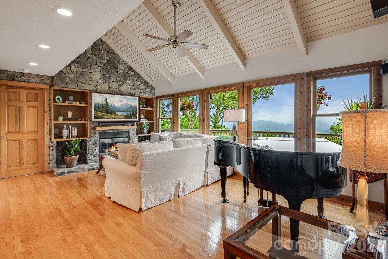 Welcome to Ivy Ridge in the heart of the Blue Ridge Mountains. This thoughtfully crafted home offers sweeping mountains views within the premier gated community, Mountain Air. Inside, you'll find warm hardwood floors flowing through the great room, a stunning stone gas fireplace, and beautifully detailed millwork highlighting the windows, doors, and dramatic vaulted ceilings.The primary is located on the main floor. A second bedroom on the main level makes an ideal office. One guest suite with an ensuite bath and private balcony sits in a secluded upstairs wing, while another spacious ensuite downstairs offers its own peaceful balcony retreat. Multiple ensuite bedrooms create an ideal setup for guests, offering both comfort and privacy so everyone feels at ease.This home includes a 1.5 car garage with separate doors for the car & golf cart. A golf cart and furnishings may be included with the sale if the buyer desires a turnkey experience. Residents enjoy the benefits of a well-maintained POA, which covers road maintenance, landscape, roof replacement, exterior painting, trash removal, and internet. Come experience 78° at 4,200 ft all summer long.