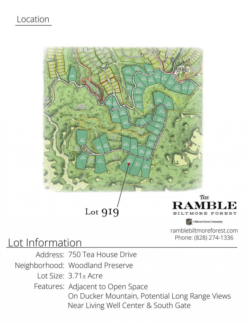 Perched along Ducker Mountain's ridge, the long-awaited Tea House homesites from The Ramble are now being released. With an ideal balance of nature, community, and location, these special properties offer quiet luxury near the heart of Asheville. Build your dream home on this spacious, South-facing sanctuary. The Longview property is greeted every day by golden sunlight radiating from Pisgah Mountain and Lake Julian. Not only is this one of the largest properties on Ducker Mountain, it also enjoys open space on its western side, ensuring a quiet, secluded setting from which to marvel at the stunning surrounding landscape.